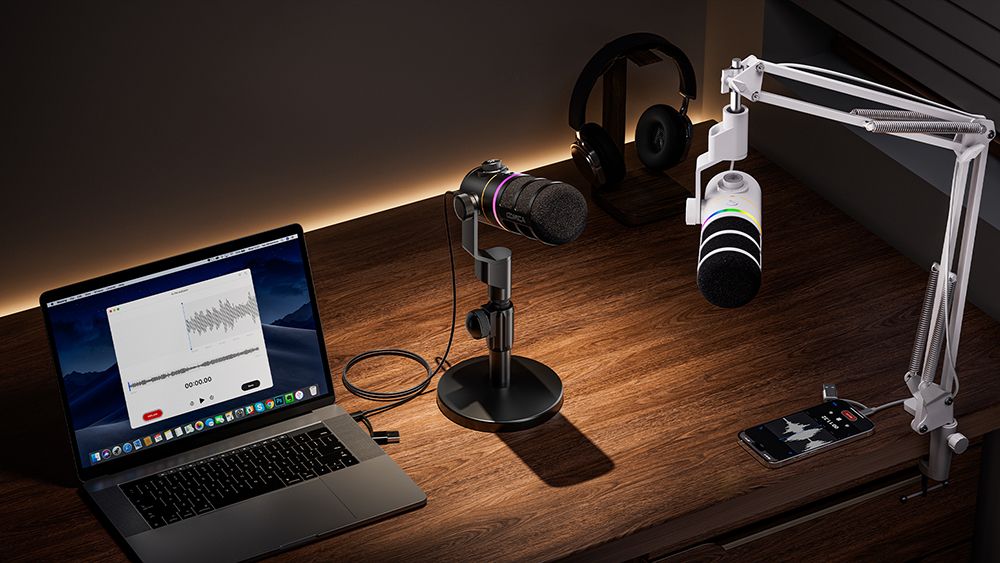Динамический студийный микрофон Comica EJoy D10 (D) – это динамический студийный микрофон с RGB подсветкой, выходом XLR/USB-C и настольной подставкой в комплекте.