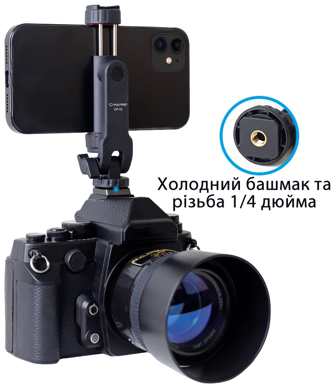 Купити Тримач смартфона для встановлення на камеру Cimapro CP-10 та інші фототовари. Відгуки, спецификації, ціна