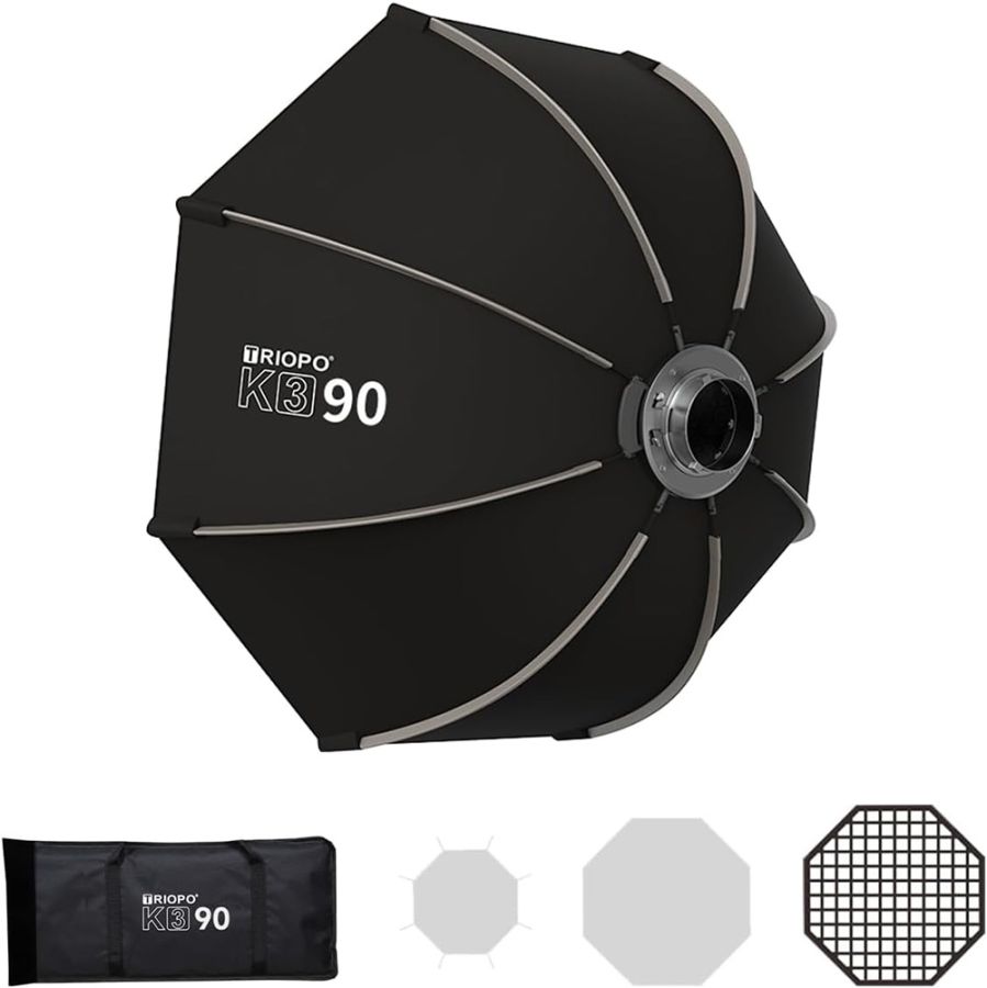 Софтбокс-октобокс Triopo 90 см Bowens K390 - це новий професійний складний октобоксдіаметром 90 см для роботи зі студійним світлом.