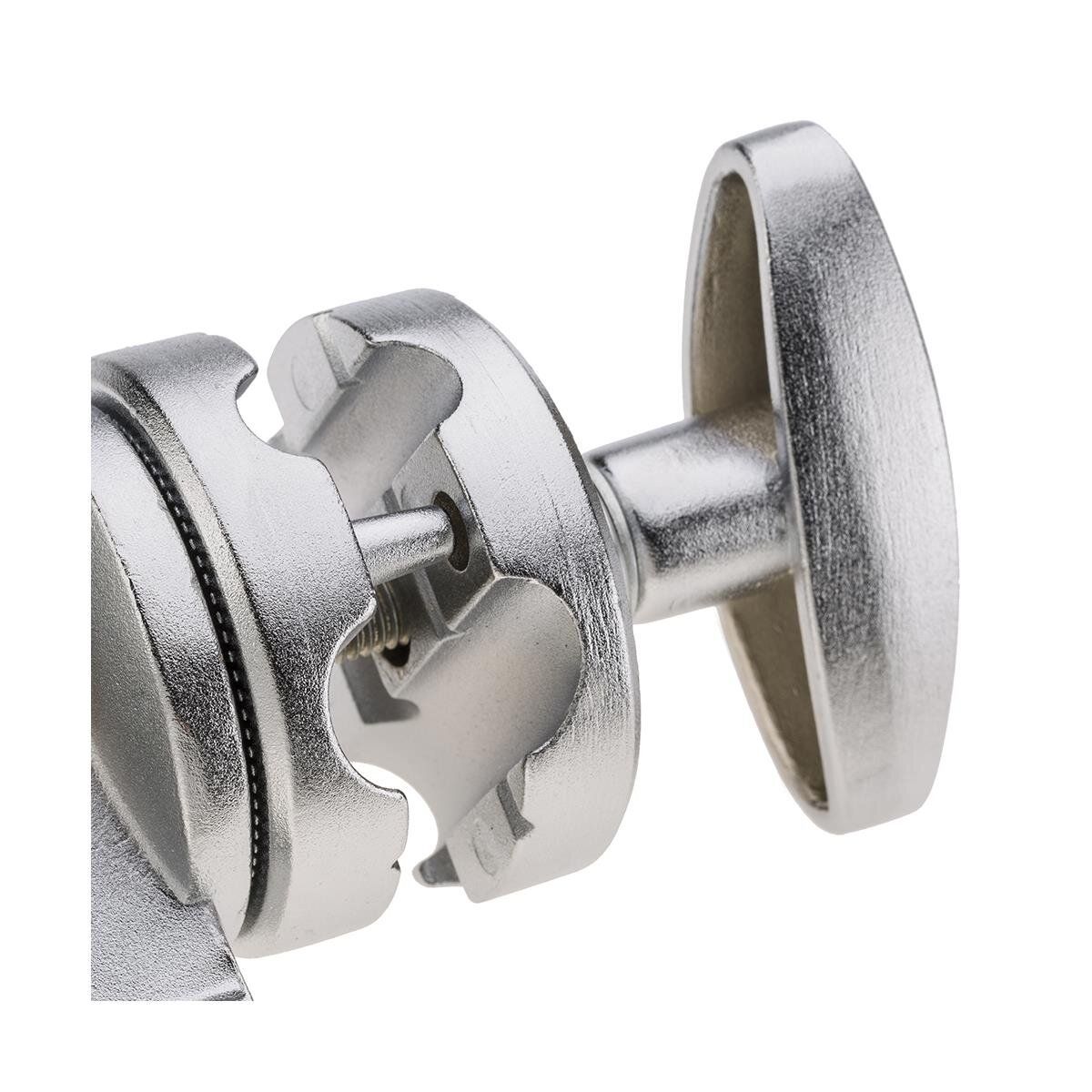 Затискачі відкриваються максимум на 1-1/8" для утримання стрижнів, дюбелів та перекладин. Канальні диски обертаються навколо центральної ручки затяжки та мають канавки для надійної фіксації при терті.
